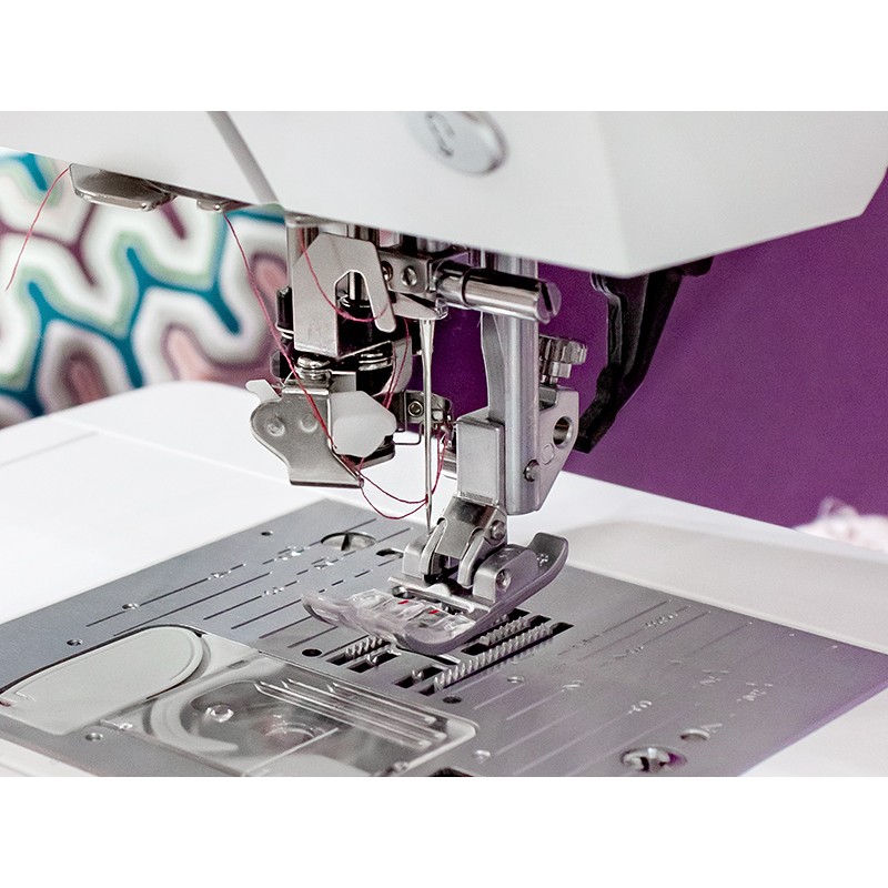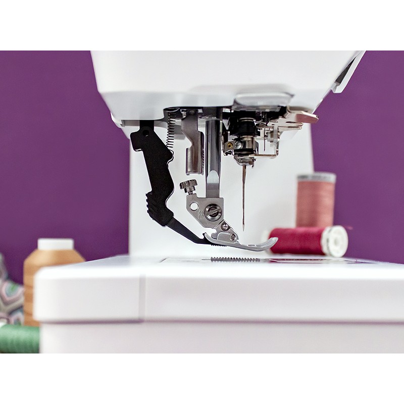 Верхний транспортер идёт синхронно с нижним. Это «фишка» Pfaff, которую копируют, но не могут превзойти. Шейте атлас, шифон, джинсу, стёганый сэндвич — слои не сдвинутся ни на миллиметр. Идеально для пэчворка и квилтинга.